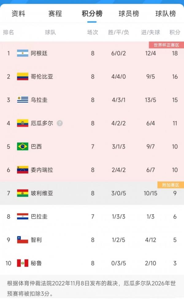 此役过后,乌拉圭以4胜3平1负积15分,排在南美世预赛第3位,委内瑞拉2胜4平2负积10分,排在第6位。